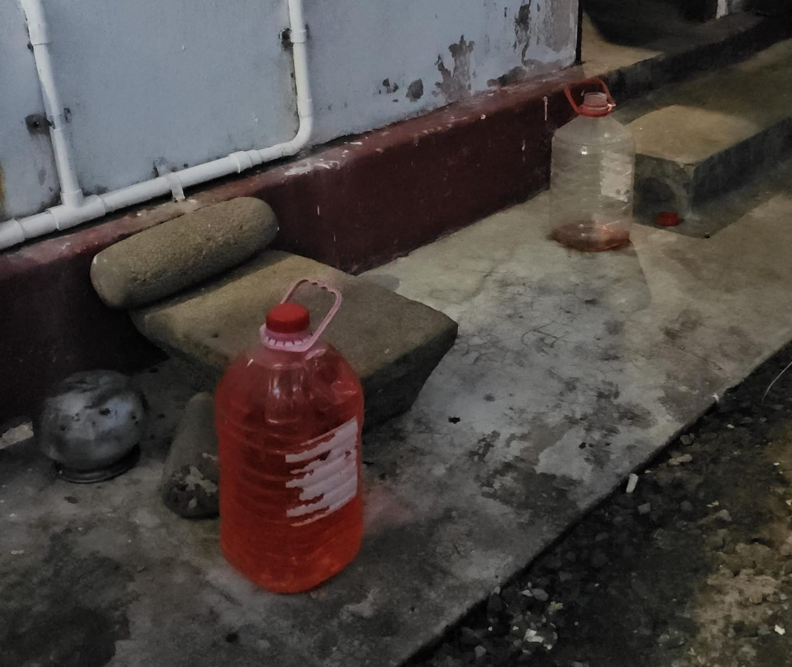 சடலத்துக்கு அருகாமையில் இரண்டு மண்ணெண்ணெய் கொள்கலன்களும் காணப்பட்டுள்ளன. அவற்றில் ஒன்று முழுமையாக தீர்ந்திருந்ததாக பொலிஸார் தெரிவித்துள்ளனர்.