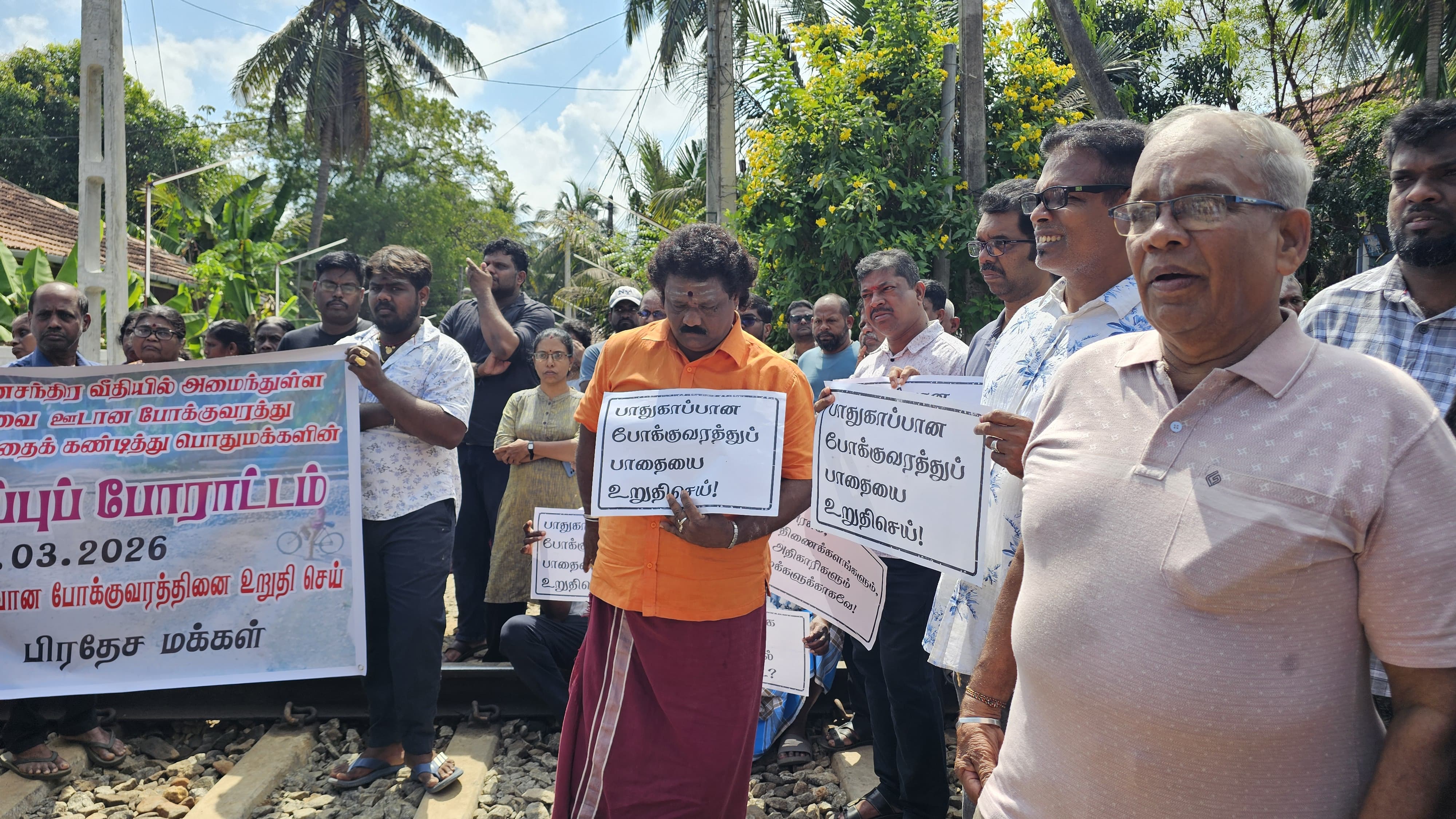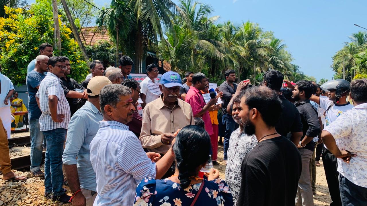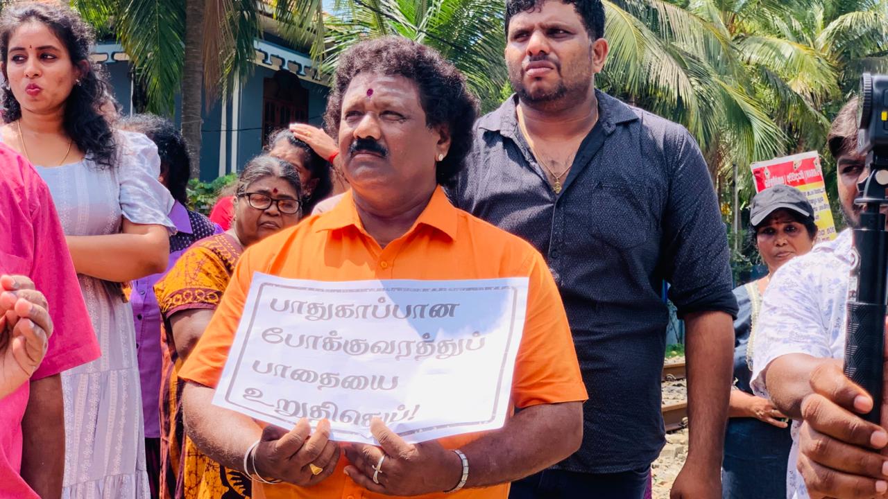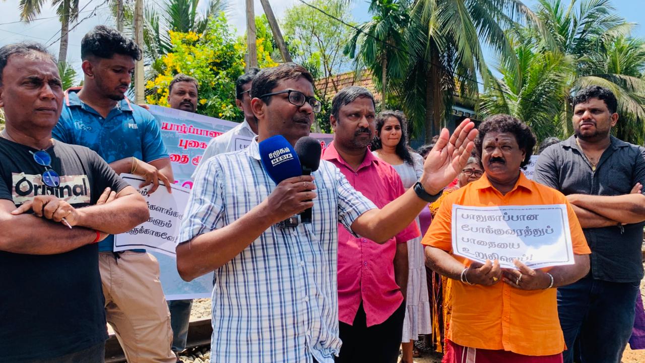 யாழ்ப்பாணம் - அன்னசந்திர வீதியில் அமைந்துள்ள புகையிரதக் கடவை ஊடான போக்குவரத்து பாதை மூடப்பட்டுள்ளதைக் கண்டித்து, குறித்த புகையிரத தடவைக்கு முன்பாக பொதுமக்கள் இன்றையதினம் கவனயீர்ப்புப் போராட்டம் ஒன்றை முன்னெடுத்தனர்.