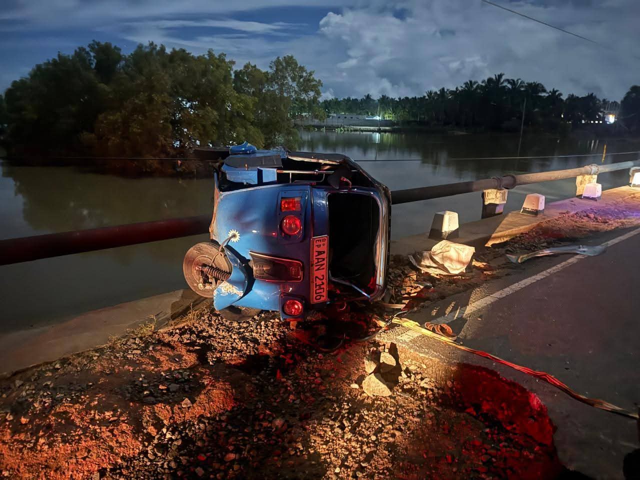 இந்த விபத்தில் முச்சக்கர வண்டி கடுமையாகச் சேதமடைந்தபோதிலும், அதன் சாரதி சிறு காயங்களுடன் தெய்வாதீனமாக உயிர் தப்பினார்.